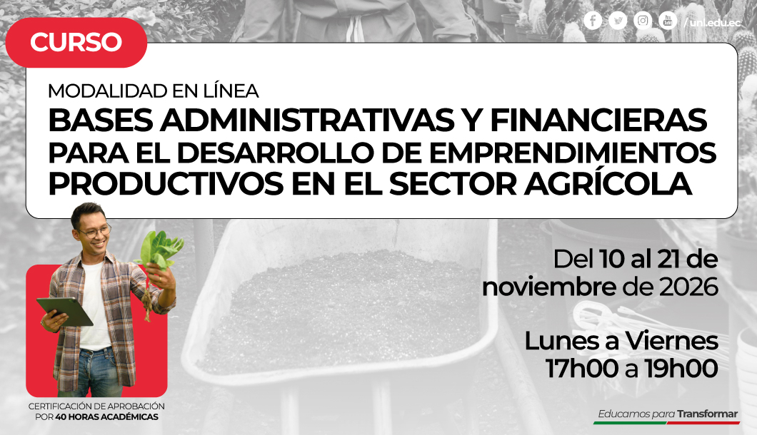 El curso “Bases administrativas y financieras para el desarrollo de emprendimientos productivos en el sector agrícola” está orientado al fortalecimiento y desarrollo de competencias vinculadas a la gestión de emprendimientos productivos innovadores, considerando aspectos relacionados al estudio de mercado, finanzas, elaboración de proyectos y acceso a financiamiento en la banca privada, instituciones gubernamentales, ONGs o mediante fondos concursables.