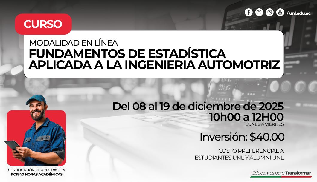 🚗💡 Este curso te permitirá desarrollar habilidades esenciales para la recolección, organización y análisis de datos automotrices, utilizando herramientas como Excel y Python para obtener conclusiones técnicas claras y prácticas. 🎯 Objetivo general Capacitar a los participantes en la recolección y análisis de datos automotrices, aplicando técnicas estadísticas básicas para interpretar resultados y generar conclusiones útiles en el ámbito técnico. 🔧 Objetivos específicos ✅ Comprender los principales tipos de datos generados en sistemas automotrices. ✅ Aprender la metodología de recolección de datos en Ingeniería Automotriz. ✅ Aplicar análisis estadístico básico en contextos reales del sector automotriz. 📌 Un curso ideal para estudiantes y profesionales que buscan fortalecer sus competencias en diagnóstico, análisis y toma de decisiones basadas en datos. 🚀 ¡Prepárate para dominar el análisis automotriz con herramientas modernas y enfocadas en la práctica!