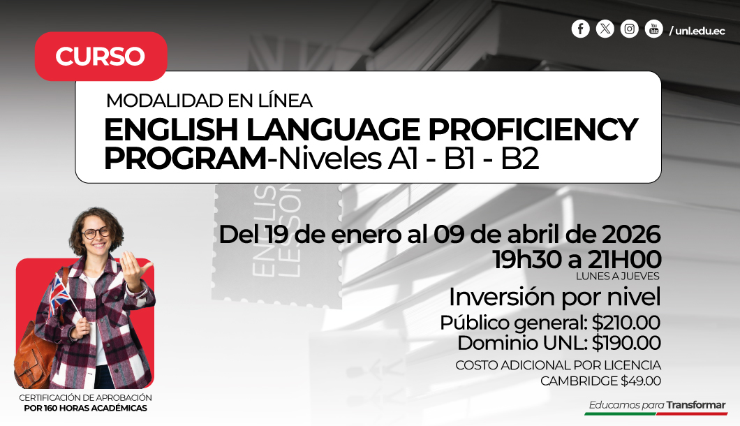 🎯 ¡Domina el inglés y abre nuevas puertas con el English Language Proficiency Program! 🚀 ¿Ya tienes conocimientos previos? Puedes inscribirte directamente en el nivel que te interesa, siempre que hayas aprobado el nivel anterior y cuentes con el certificado o certificación según el Marco Común Europeo de Referencia para las Lenguas (MCER) . Por ejemplo: si deseas tomar B1, necesitas tener aprobado el A2.