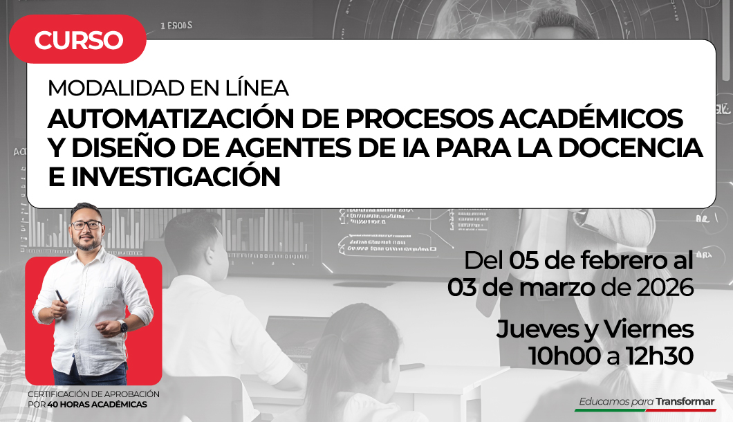 Este curso está diseñado como una actualización para docentes e investigadores que desean evolucionar de usuarios de IA a arquitectos de automatización académica, superando la generación básica de texto. La capacitación se centra en la implementación práctica de flujos de trabajo automatizados y agentes inteligentes utilizando herramientas de acceso gratuito. A lo largo de cuatro semanas, los participantes aprenderán a usar Make como herramienta gratuita para conectar aplicaciones institucionales (Moodle, Drive, Gmail), para ejecutar acciones masivas como la evaluación de tareas con rúbricas personalizadas y la gestión de correos electrónicos. Asimismo, aprenderán a configurar agentes en Google AI Studio para redacción científica avanzada y utilizarán la IA nativa de Google Colab para generar análisis de datos y gráficos complejos sin necesidad de programar. El curso promueve la creación de un ecosistema digital personal que reduce el tiempo de carga operativa y repetitiva en la academia. Objetivo general Implementar ecosistemas de automatización y agentes inteligentes utilizando herramientas gratuitas, para optimizar la evaluación masiva, la gestión administrativa y el análisis de datos, reduciendo la carga operativa y potenciando la productividad en la docencia e investigación. Objetivos específicos • Configurar flujos automatizados en Make que conecten aplicaciones institucionales para realizar evaluaciones masivas de tareas y gestionar correos electrónicos de forma eficiente. • Diseñar agentes en Google AI Studio que repliquen el estilo del docente, automatizando la redacción científica y la traducción técnica con alta precisión y personalización. • Aplicar estrategias de síntesis automatizada de información y análisis documental mediante IA para agilizar la revisión bibliográfica, detección de patrones y el control académico. • Emplear la inteligencia artificial nativa de Google Colab para automatizar el análisis de datos y la generación de gráficos estadísticos complejos mediante lenguaje natural.