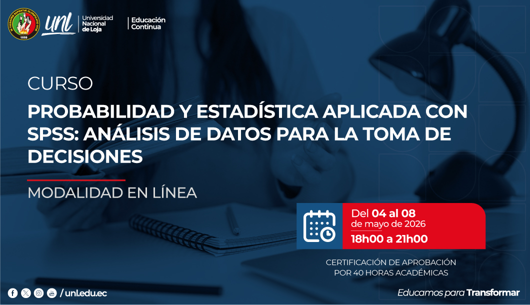 En la actualidad, la toma de decisiones en los ámbitos profesional, académico y organizacional depende cada vez más del análisis adecuado de datos; sin embargo, muchos profesionales enfrentan dificultades para interpretar información cuantitativa debido al desconocimiento o desactualización en probabilidad, estadística y el uso de herramientas especializadas. Esta brecha limita la capacidad para comprender fenómenos, evaluar riesgos y sustentar decisiones de manera objetiva, por lo que el uso de software como SPSS se vuelve fundamental al permitir el análisis de datos reales de forma eficiente y visual, incluso sin una formación matemática avanzada. En este contexto, el curso “Probabilidad y Estadística Aplicada con SPSS: Análisis de Datos para la Toma de Decisiones” surge como una respuesta práctica para fortalecer competencias analíticas, permitiendo a los participantes actualizar sus habilidades en estadística descriptiva e inferencial y manejo de datos. De esta manera, el programa dota a los profesionales de herramientas concretas para sustentar conclusiones y mejorar la calidad de sus decisiones, alineándose con las demandas actuales de gestión basada en datos y fortaleciendo sus capacidades clave en sus respectivos campos.